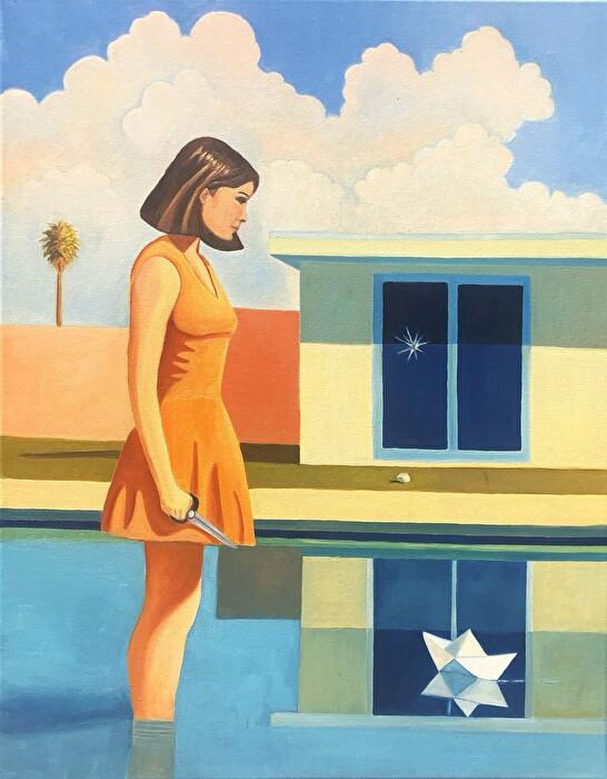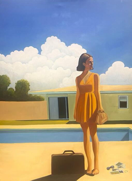 My goal as painter is to create a moment in a world someone would be compelled to continually revisit. In the figure collection, that moment captures the end of one thing and the beginning of another. Each piece is titled after a familiar idioms — adding humor and ambiguity to a layered narrative. The composition, objects and titles are designed to work in concert, each element adding a new possibility to the interpretation or perspective of the narrative.