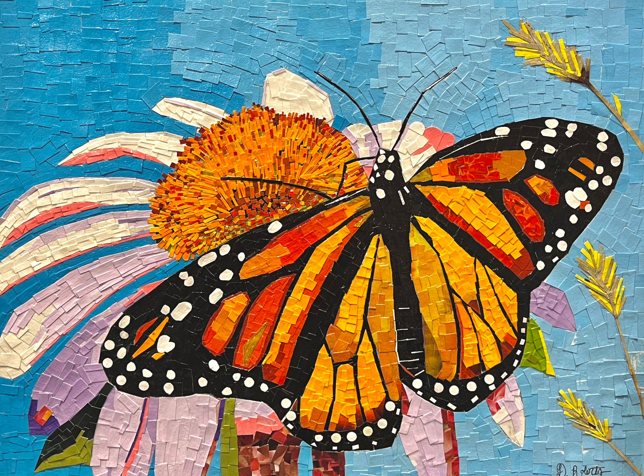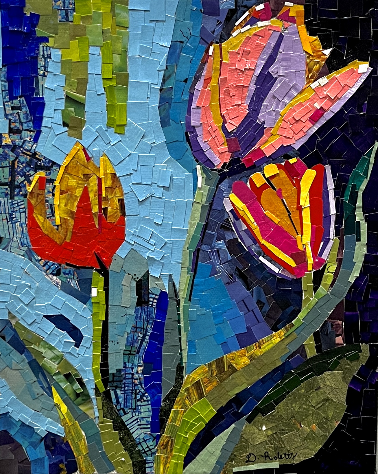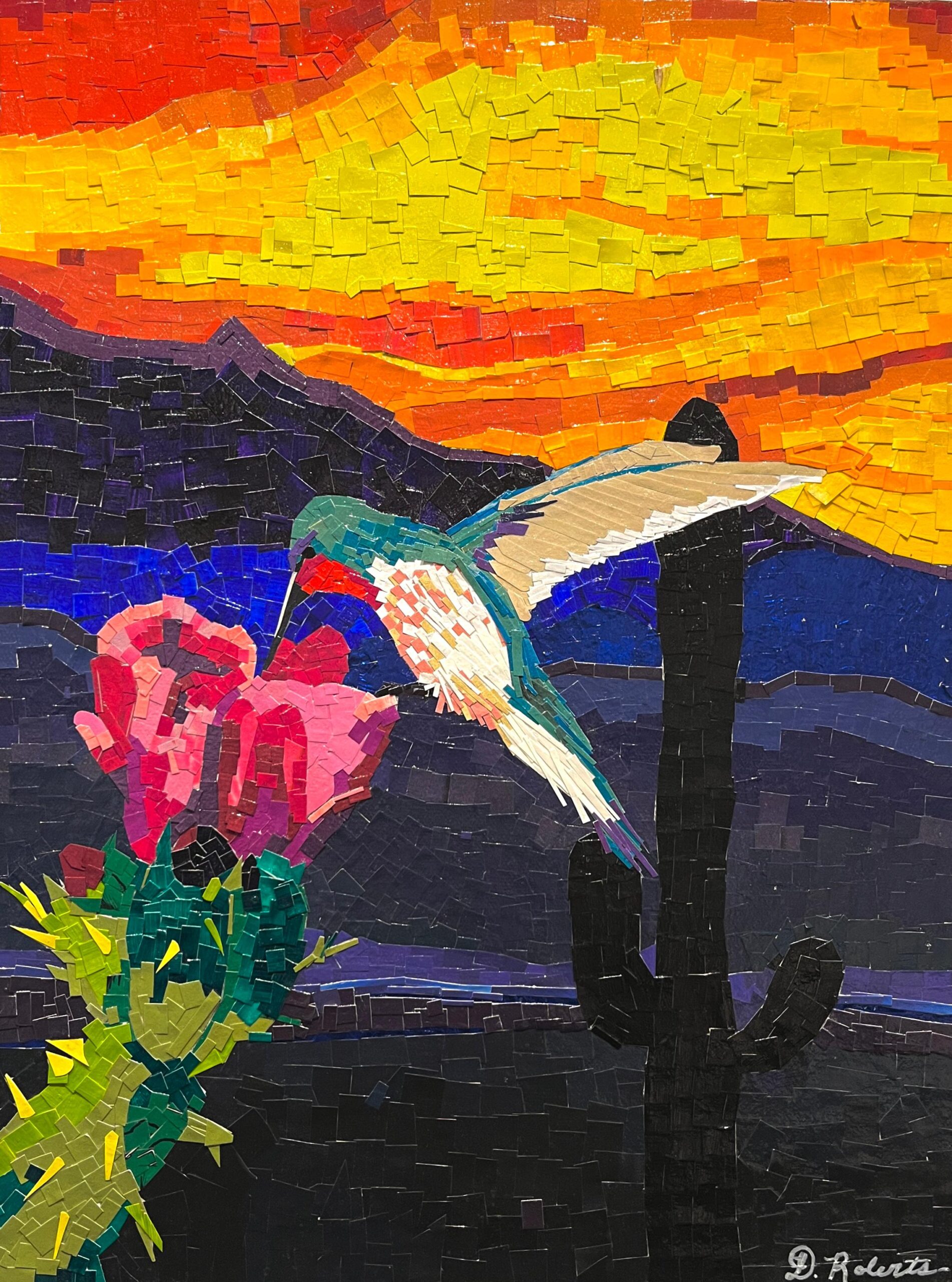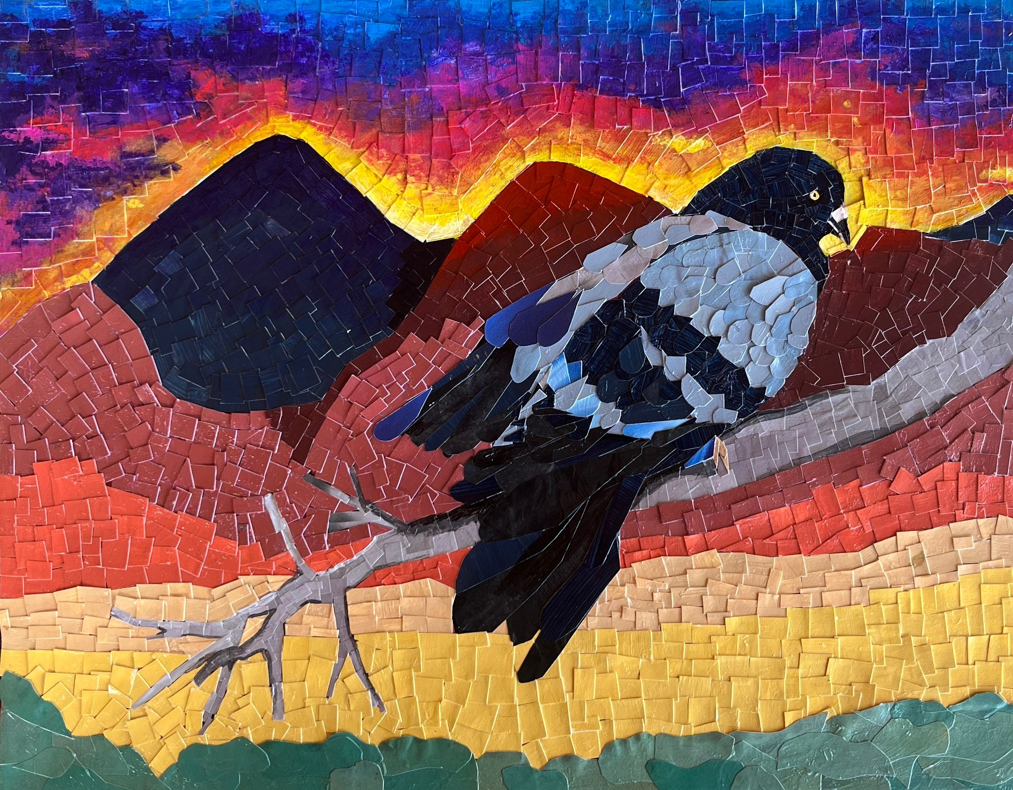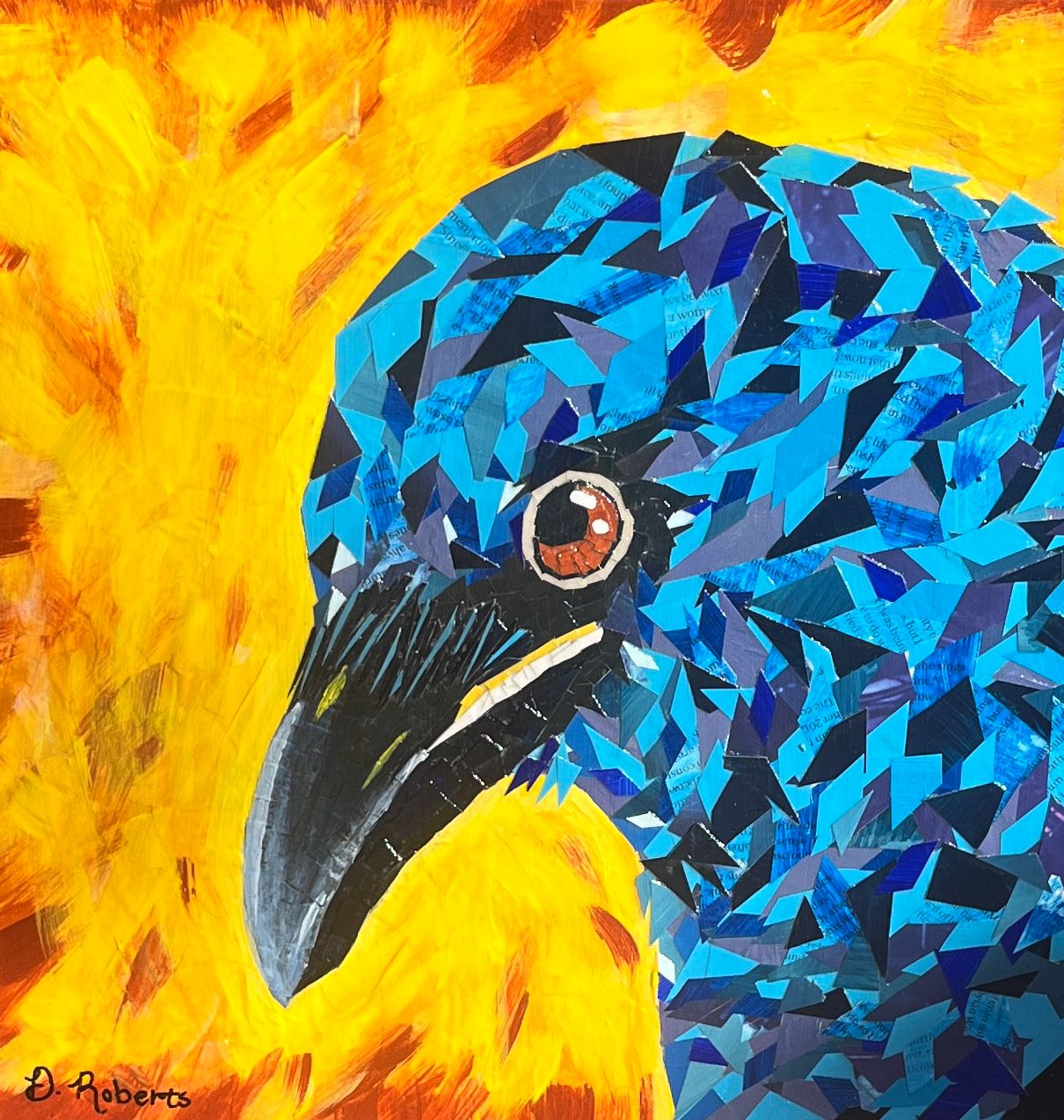Dakota’s artistic approach is eclectic, with a primary focus on mixed media. She blends elements of collage and mosaic with acrylic paint to create layered works inspired by nature and the environment. Continuously experimenting with materials and subject matter, she believes in pushing creative boundaries and avoids being confined to a single style or medium.