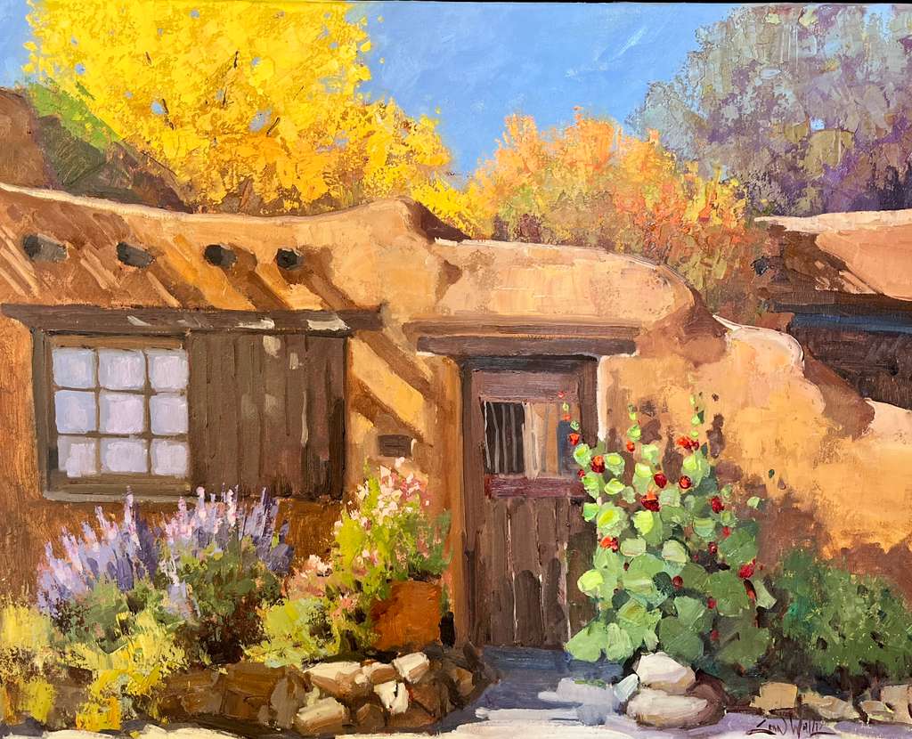 As an Impressionist, Wallis pays close attention to the relationship of light and color, capturing its fleeting moments with the texture of oil paint and a broad, colorful palette. His work with light, hue, and atmosphere manifest through a skillful combination of colors that vibrates and excites the eye, resulting in an uncanny illusion of depth. His subjects speak of an era that is fading away: from the blooming flowers of botanical gardens, to the California missions, to dilapidated barns.